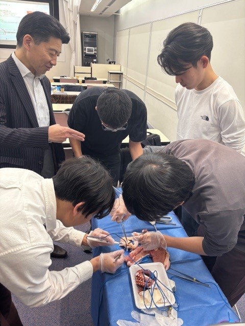 参加者は手を動かしながら外科手技を体験し、解剖と手術の関係をより深く理解する機会となりました。